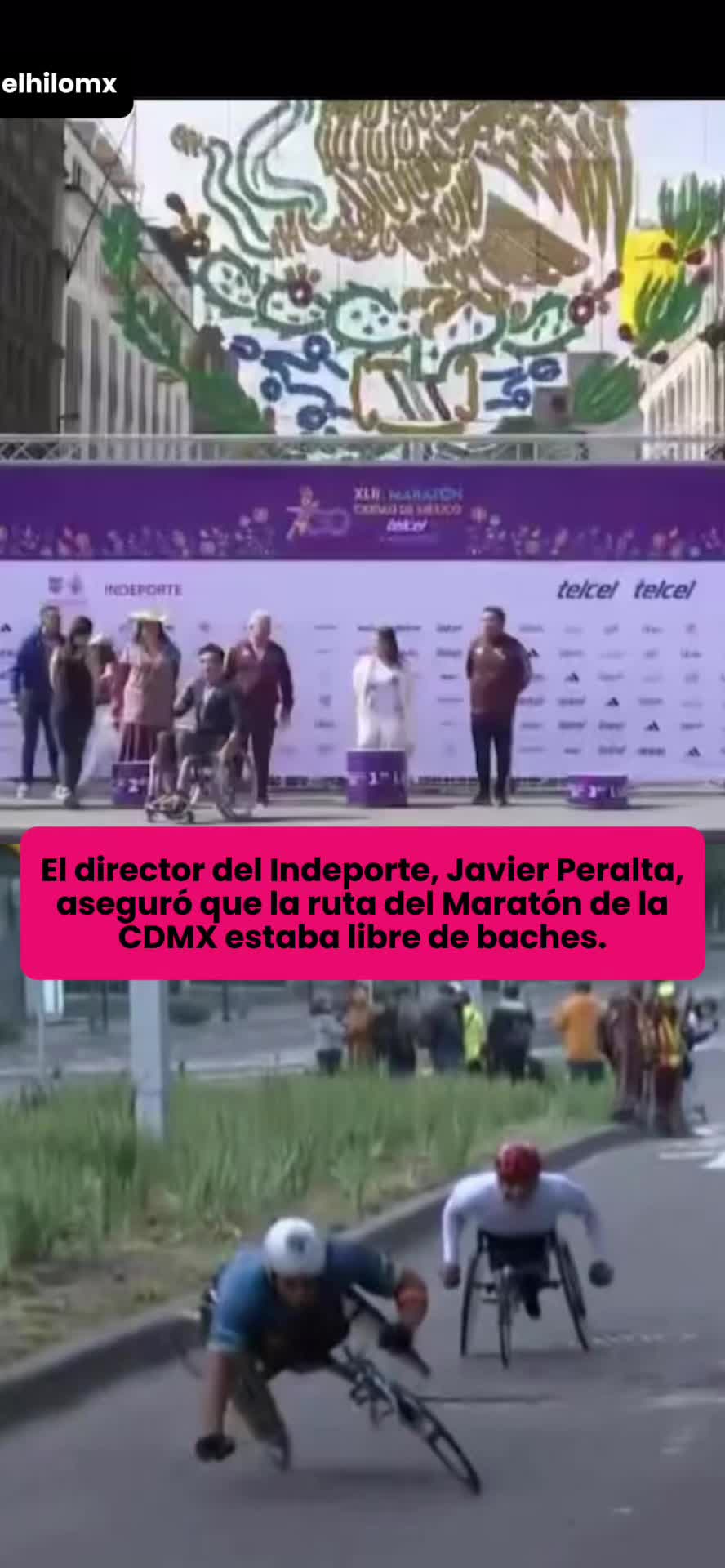 @elhilomx El jueves el director del Indeporte, Javier Peralta, aseguró que la ruta del Maratón de la CDMX estaba libre de baches. #maraton #baches #discapacitados #noticias